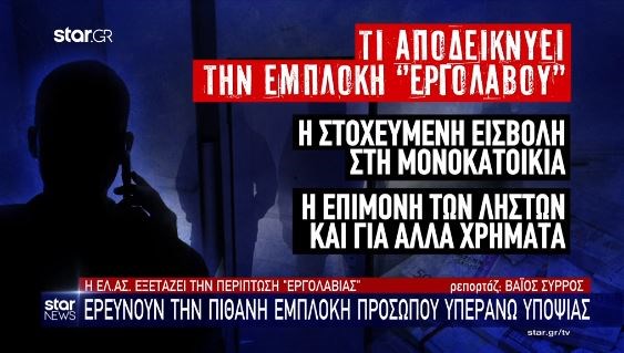 Στο μεταξύ, πληροφορίες αναφέρουν ότι οι αστυνομικοί εξετάζουν και το σενάριο την εντολή για την αιματηρή ληστεία στα Γλυκά Νερά να έδωσε πρόσωπο υπεράνω υποψίας. Πρόκειται για άτομο, που στην αργκό του οργανωμένου εγκλήματος, ονομάζεται ο “εργολάβος”. Όπως πιθανολογείται, σύμφωνα με το Star, το πρόσωπο αυτό είχε άριστη πληροφόρηση για τα χρήματα που έβγαλε το ζευγάρι από την τράπεζα, προκειμένου να προχωρήσει στην αγορά του οικοπέδου και ενδεχομένως ήταν εκείνος που έδωσε την κρίσιμη αυτή πληροφορία στη συμμορία των κακοποιών. Συνήθως σε αυτές τις περιπτώσεις, ο “εργολάβος” λαμβάνει ένα ποσοστό από τη λεία της ληστείας ως αντίτιμο για την πληροφορία. Οι αστυνομικοί που ερευνούν την υπόθεση, αναζητούν λοιπόν εκτός από τους τρεις δράστες οι οποίοι εισέβαλαν στην κατοικία στα Γλυκά Νερά και το τέταρτο αυτό πρόσωπο, ακολουθώντας τη διαδρομή του χρήματος, από την ώρα δηλαδή που το ζευγάρι έκανε την ανάληψη από την τράπεζα. Δύο πράγματα συνηγορούν σε αυτή την εκτίμηση της αστυνομίας.