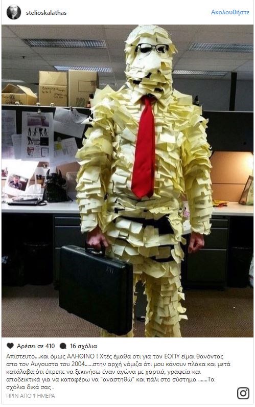 Συγκεκριμένα, στην ανάρτησή του ανέφερε πως για τον ΕΟΠΥΥ ήταν νεκρός από τον Αύγουστο του 2004. Συγκεκριμένα, ανέφερε: ««Απίστευτο…. και όμως ΑΛΗΘΙΝΟ! Χτες έμαθα ότι για τον ΕΟΠΥΥ είμαι θανόντας από τον Αύγουστο του 2004……στην αρχή νόμιζα ότι μου κάνουν πλάκα και μετά κατάλαβα ότι έπρεπε να ξεκινήσω έναν αγώνα με χαρτιά, γραφεία και αποδεικτικά για να καταφέρω να “αναστηθώ” και πάλι στο σύστημα …….Τα σχόλια δικά σας».