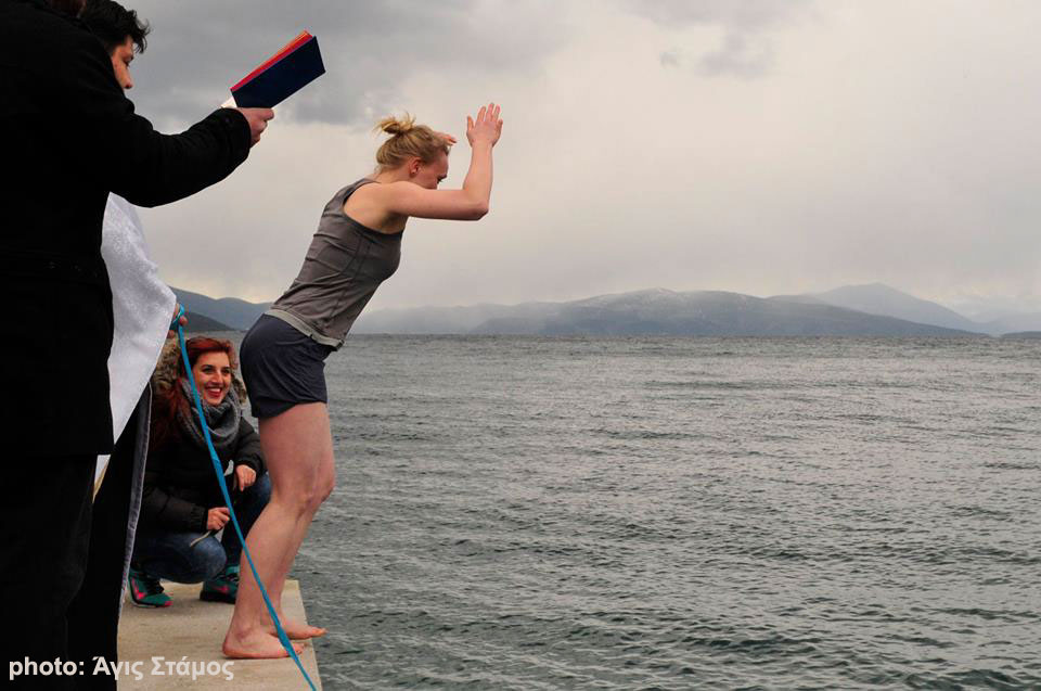 Μια έκπληξη επιφύλασσε στους Χορτιανούς ο εφετινός εορτασμός των Θεοφανείων στο γραφικό χωριό του Νοτίου Πηλίου. Η μοναδική κολυμβήτρια που αψήφησε το κρύο και έπεσε στα παγωμένα νερά του Παγασητικού για να πιάσει τον σταυρό, ήταν μια νεαρή από την Αλάσκα, η οποία δεδομένων των καιρικών συνθηκών ένιωσε σαν στο σπίτι της.