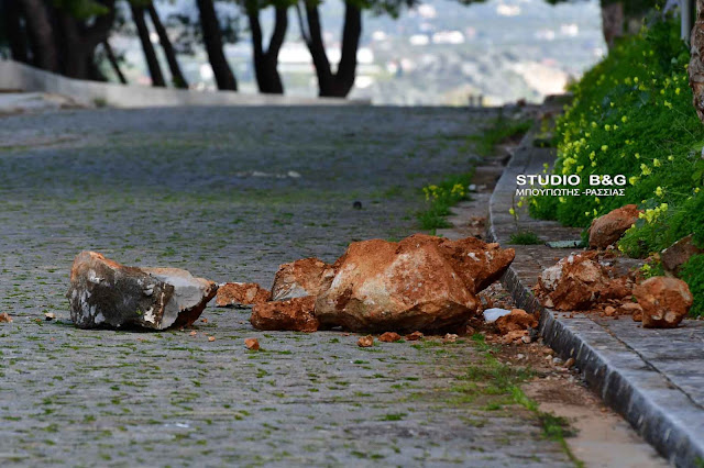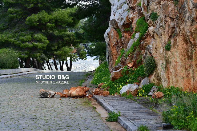Νέα κατολίσθηση βράχων σημειώθηκε σήμερα αυτή τη φορά στην περιοχή της Ακροναυπλίας στο Ναύπλιο.
