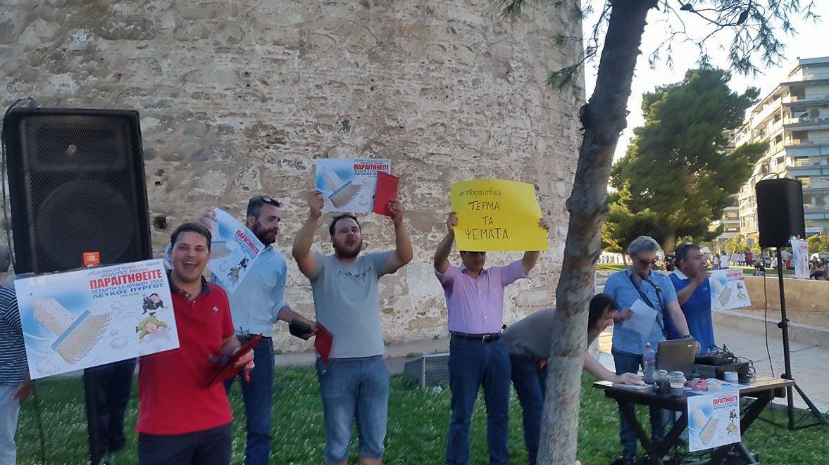 Στην πλατεία του Λευκού Πύργου πραγματοποιήθηκε στη Θεσσαλονίκη, παράλληλα με την Αθήνα, η συγκέντρωση του κινήματος “παραιτηθείτε“.
