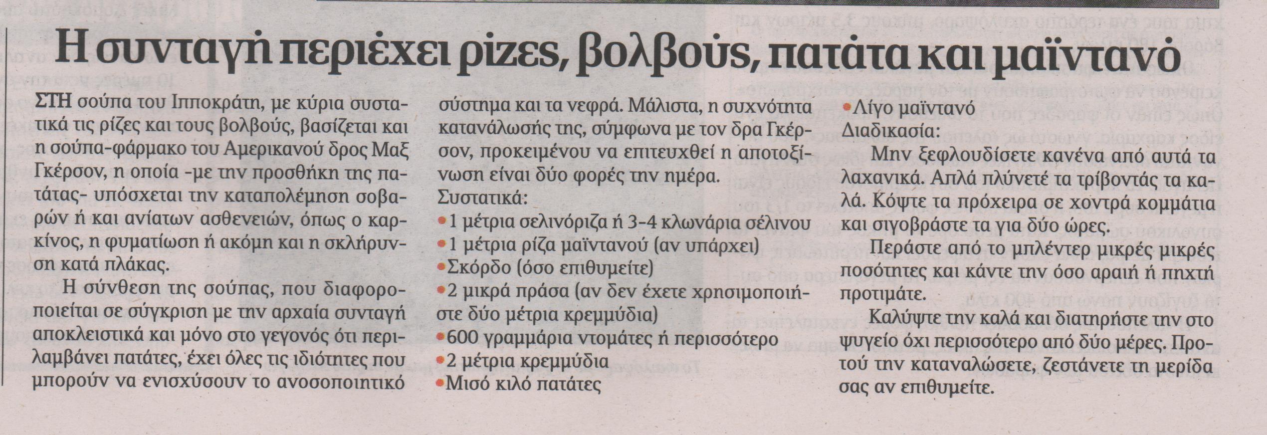 Ο Γκέρσον τροποποίησε ελαφρώς τη σούπα του Ιπποκράτη προσθέτωντας πατάτα.
