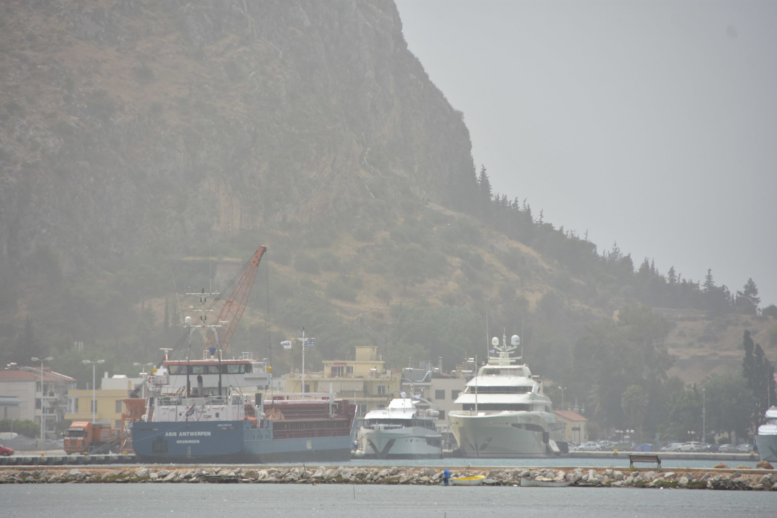 Στο Ναύπλιο οι δυνατοί νοτιάδες που πνέουν στην περιοχή κάνουν την ατμόσφαιρα αποπνικτική.