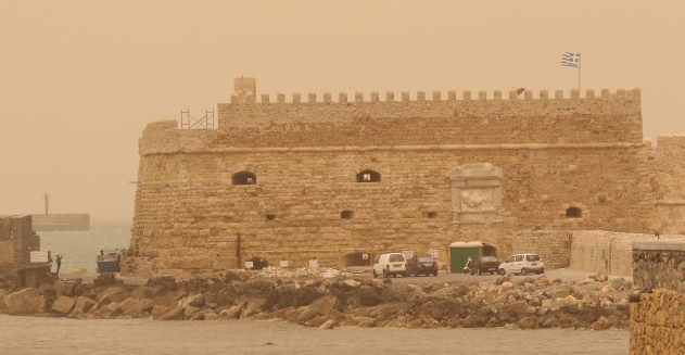 Έντονο είναι το φαινόμενο και στο Ηράκλειο Κρήτης όπου ο ουρανός έχει σκοτεινιάσει.