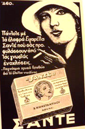 Το πακέτο των τσιγάρων Sante έχει μείνει στην ιστορία. Τα συγκεκριμένα τσιγάρα είχαν ξεπεράσει κατά πολύ την εικόνα ενός προϊόντος και ήταν πια ένα διαχρονικό σύμβολο στον χώρο του καπνεμπορίου. Σε αυτό συνέβαλε η διάσημη κόκκινη κασετίνα με την ξανθιά γυναίκα που καπνίζει. Κυκλοφόρησαν για πρώτη φορά στην αγορά το 1933 από τα αδέλφια Κωνσταντίνου.
