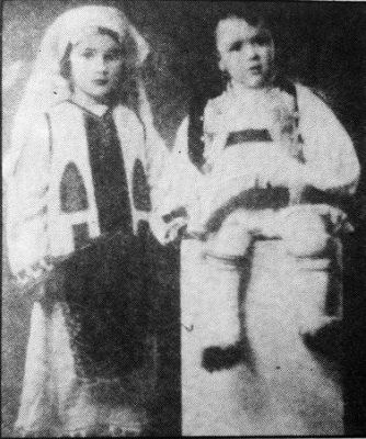 Η Αλίκη με τεράστιο φιόγκο στο κεφάλι κρατάει στην αγκαλιά την κούκλα της και στέκεται δίπλα στον νεογέννητο αδερφό της Τάκη