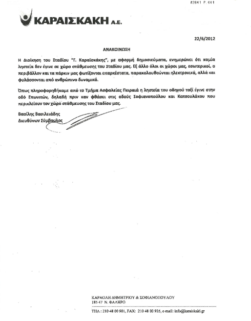 Η ανακοίνωση του “Γ. Καραϊσκάκης”