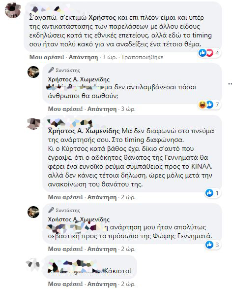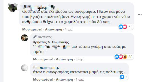 “Το ότι πρέπει να διευκρινιστεί το αυτονόητο είναι θλιβερό”, έγραψε κάτω από σχόλιο διαδικτυακού του φίλου, ο Χρήστος Χωμενίδης.