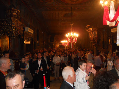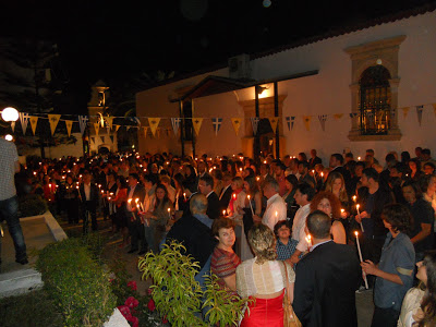 Οι πιστοί ασπάζονταν μεταξύ τους ,ανταλλάσοντας ευχές και όλοι είχαν να πουν για το ευχάριστο νέο. Από νωρίς οι πιστοί είχαν κατακλείσει το εσωτερικό του Ναού για να λάβουν το Άγιο Φως από τα Ιεροσόλυμα .
