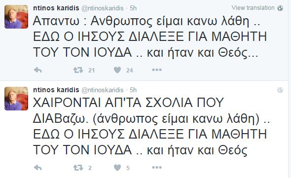 Σήμερ επανήλθε γράφοντας: “Άνθρωπος είμαι, κάνω λάθη. Εδώ ο Ιησούς διάλεξε για μαθητή τον Ιούδα…και ήταν Θεός”.