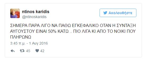 Χθες ο Ντίνος Καρύδης έγραψε ένα μήνυμα με το οποίο διαμαρτυρόταν για την περικοπή της σύνταξής του, σημειώνοντας πως η μείωση είναι πάνω από το 50% για τον μήνα Αύγουστο.
