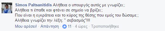 Την απάντηση του στον αναπληρωτή υπουργό Εσωτερικών Χριστόφορο Βερναρδάκη, ο οποίος τον χαρακτήρισε “φασιστάκι της πλάκας” και “ρατσιστοειδή τύπο”, έδωσε μέσω σχολίου στην προσωπική του σελίδα στο facebook, ο Πρόεδρος των Ολυμπιονικών με Αναπηρία, Σίμος Παλτσανιτίδης, ο οποίος έγραψε χαρακτηριστικά: