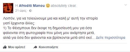 Λίγο αργότερα και μετά την έντονη κριτική και τα σχόλια που δέχτηκε στην σελίδα της έκανε και νέα ανάρτηση στην οποία γράφει: