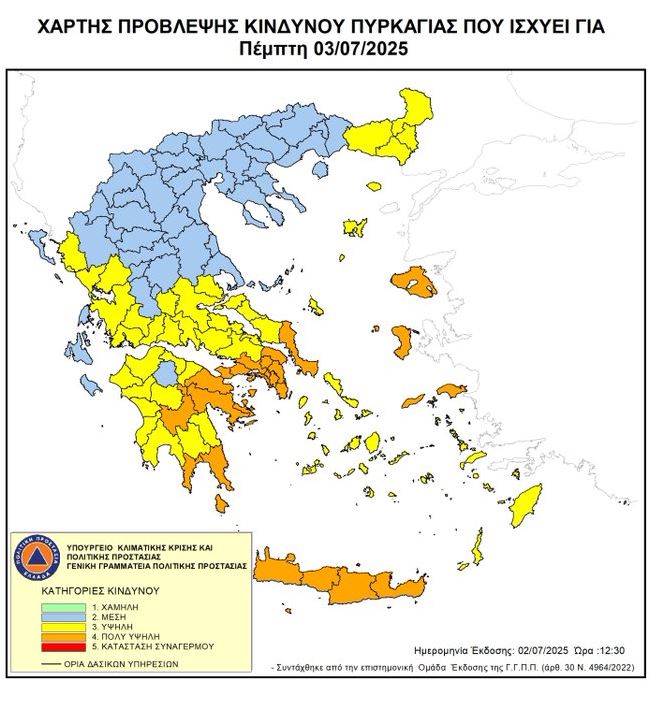 ⚠️ Χάρτης Πρόβλεψης Κινδύνου 🔥 για αύριο Πέμπτη 03/07