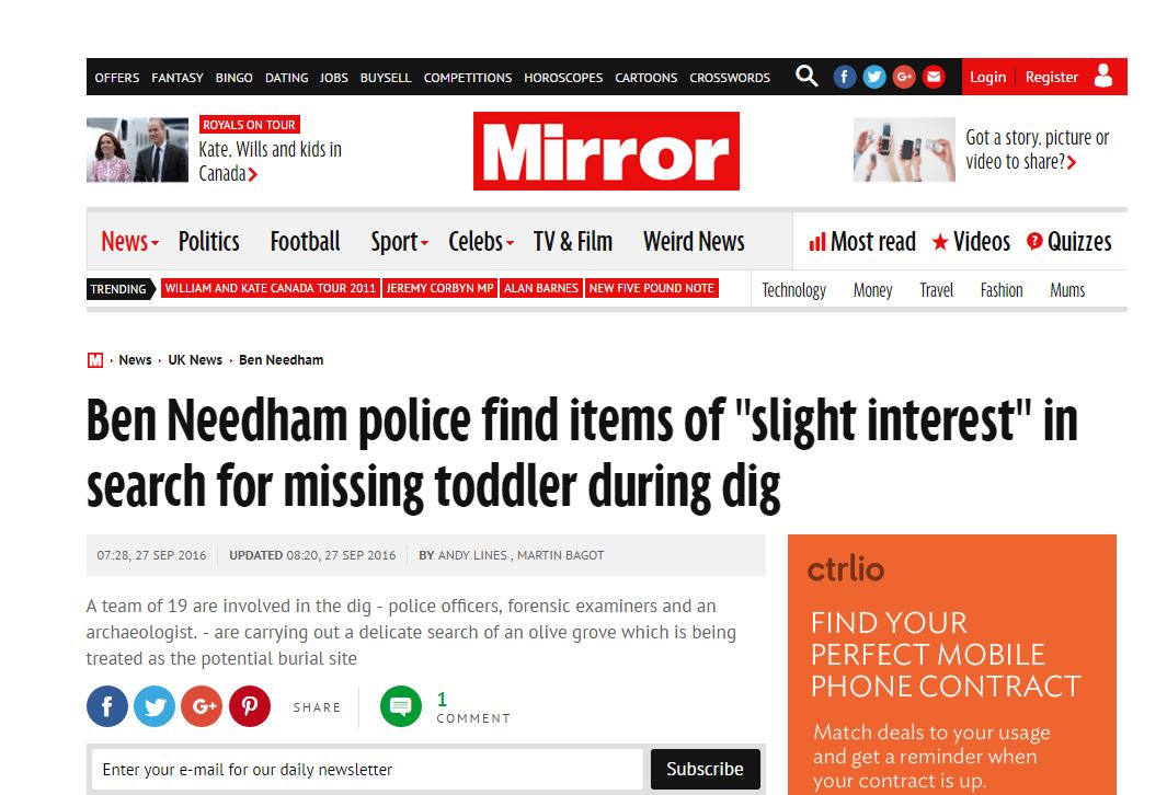 Daily Mirror: Δεκάδες οστά στο χωράφι που ψάχνουν τον μικρό Μπεν