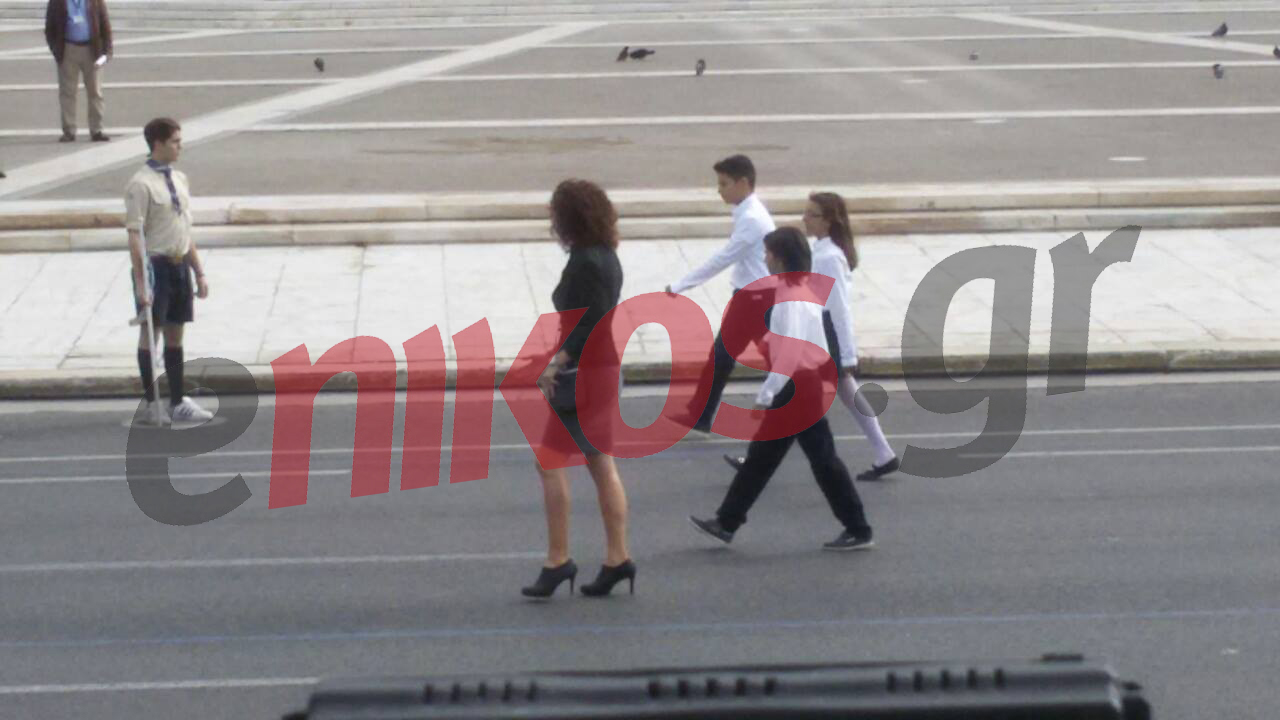 Η μελαχρινή δασκάλα με τα ψιλοτάκουνα μποτάκια τράβηξε τα βλέμματα στην μαθητική παρέλαση στο κέντρο της Αθήνας για τον εορτασμό της 28ης Οκτωβρίου.