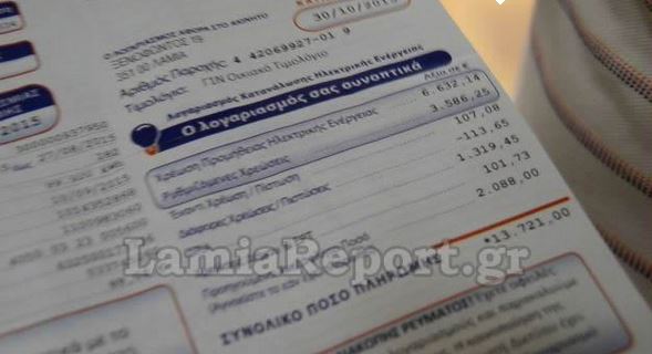 Λογαριασμός της ΔΕΗ με το εξωφρενικό πόσο των 13.721 € έφτασε στο σπίτι ενός πολίτη στη Λαμία.