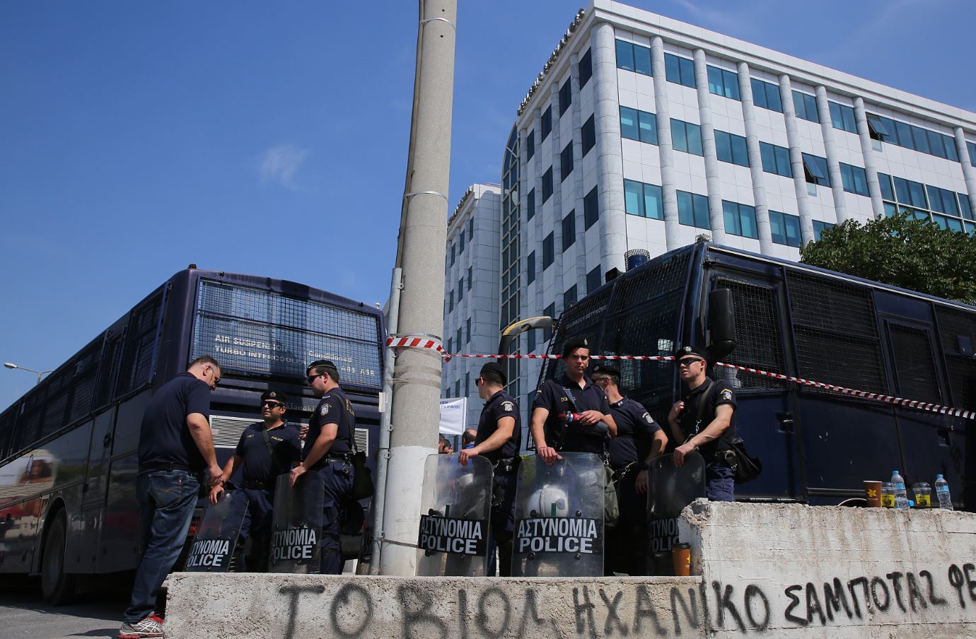 Οι εργαζόμενοι διαμαρτυρήθηκαν, ζητώντας την εξασφάλιση των εργασιακών τους σχέσεων ενόψει της ιδιωτικοποίησης των δύο λιμανιών, ενώ αυστηρά το μέτρα της αστυνομίας στο Χρηματιστήριο.