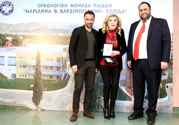 «Είχε φοβερή επιμονή η κ. Βαρδινογιάννη να έρθω σήμερα. Έρχομαι από τον Πειραιά και λυπάμαι που έρχομαι λίγο καθυστερημένη γιατί είχε τρομερή κίνηση και είμαι έκπληκτη γιατί είναι το τελευταίο πράγμα που περίμενα. Μαριάννα μου αγαπημένη σε ευχαριστώ πάρα πολύ και εκείνο που θέλω να πω είναι ότι ευχαριστούμε μονίμως όλες μας, που είμαστε στην ΕΛΠΙΔΑ τόσα χρόνια, εσένα γιατί είσαι αληθινή έμπνευση. Αυτή είναι η αλήθεια, στο χρωστάμε. Σε ευχαριστώ για τα καλά σου λόγια για τον αείμνηστο πατέρα μου. Όντως είμαι από παιδί μαζί σας και στην οικογένεια σας. Σας ευχαριστώ πάρα πολύ γιατί αισθάνομαι μια πάρα πολύ σοβαρή συνέχεια με εσάς όπως και με τον Πρόεδρο του Ολυμπιακού, τον κ. Μαρινάκη, σαν παιδικό φίλο και όχι μόνο. Θα ήθελα να ευχηθώ καλή χρονιά, καλή συνέχεια σε όλους και να δίνουμε πάντα πράγματα. Αξίζει πραγματικά τον κόπο να βοηθάμε τους ανθρώπους, γιατί με αυτό τον τρόπο κάνουμε το σημαντικότερο. Δίνουμε και έχουμε και οι ίδιοι πάρα πολύ μεγάλη ευχαρίστηση με αυτόν τον τρόπο. Να είστε καλά, σας ευχαριστώ πολύ όλους».
