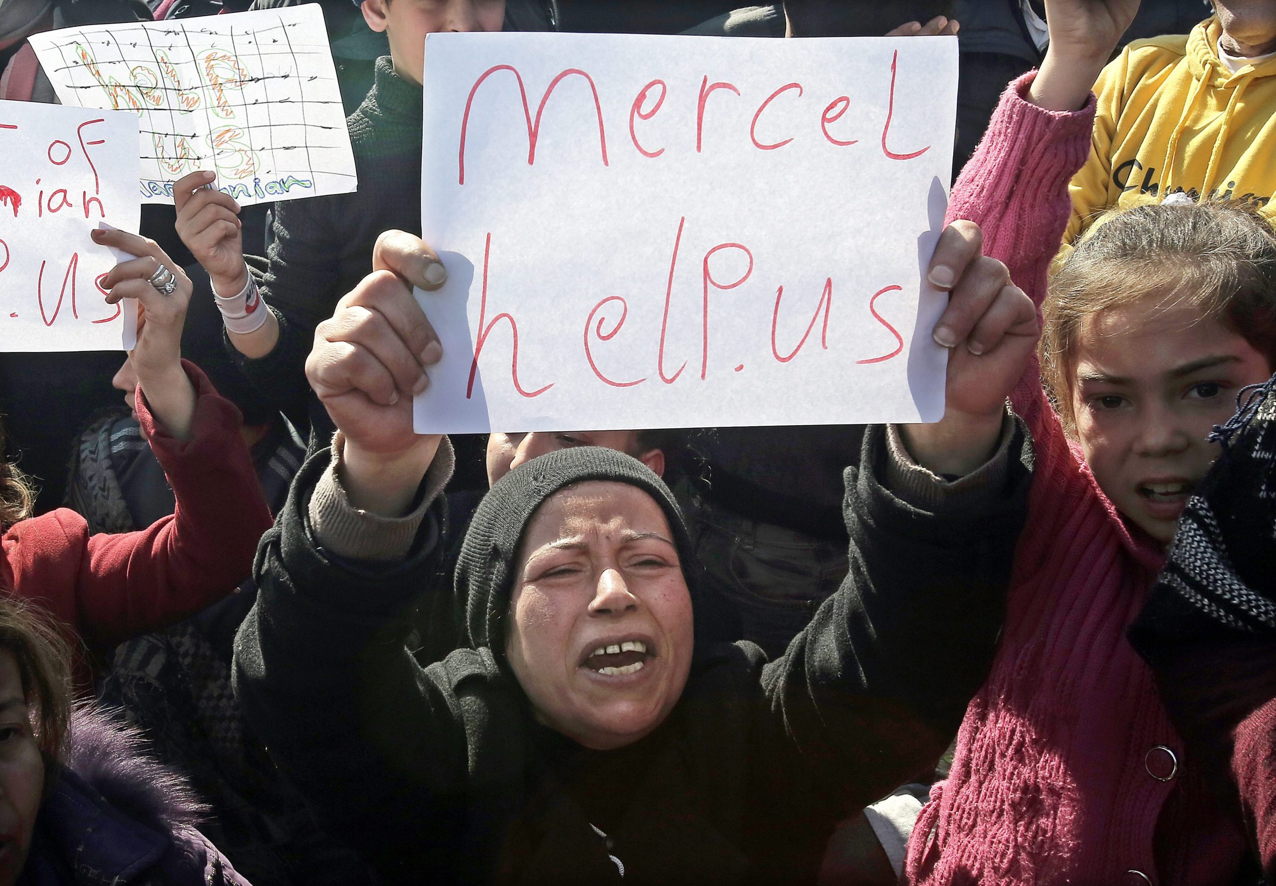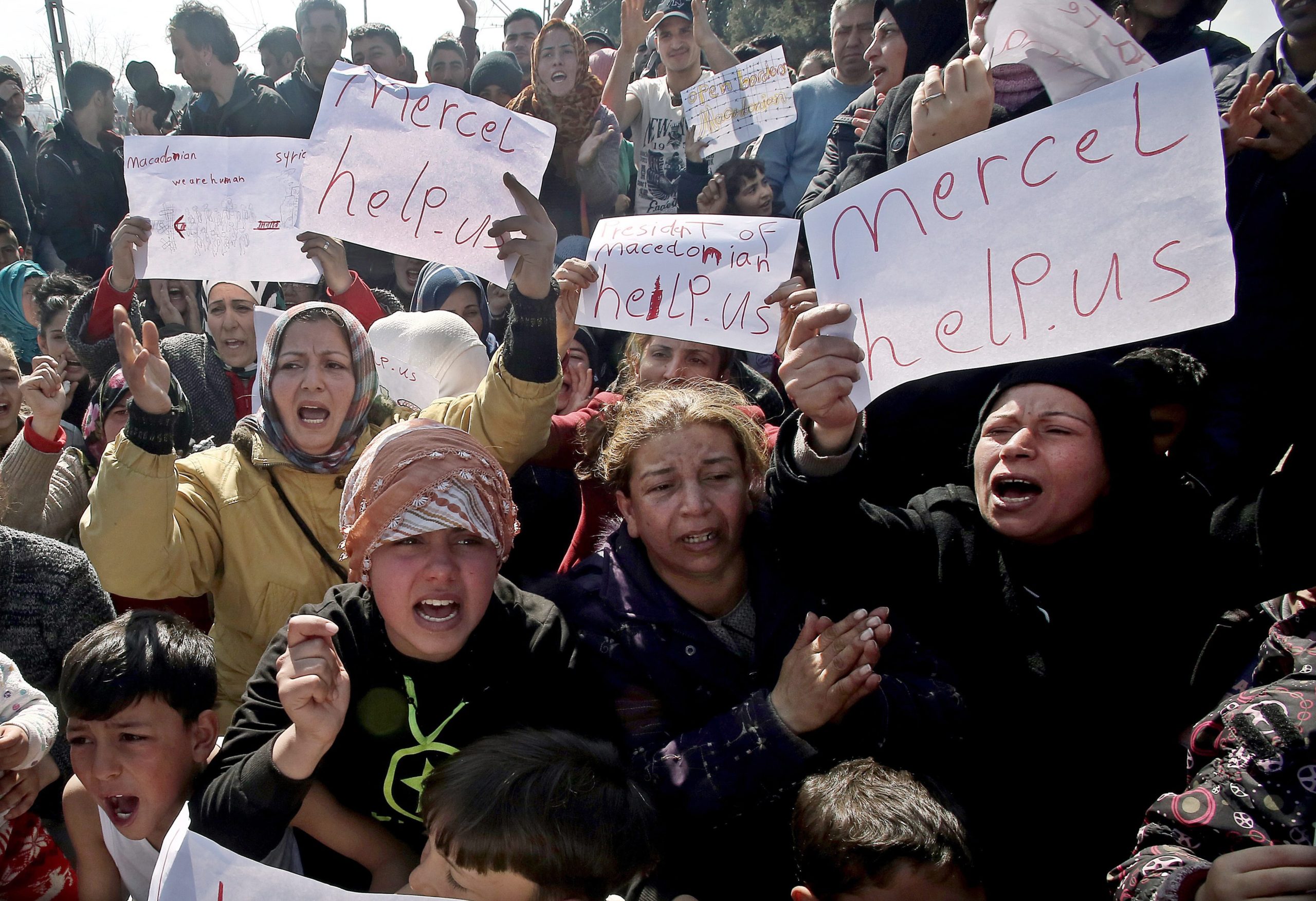 «Μέρκελ βοήθησέ μας», «Ανοίξτε τα σύνορα», «Βοηθήστε τα παιδιά μας» ήταν μερικά που από τα συνθήματα, που έγραφαν οι πρόσφυγες στα πανό που κρατούσαν κατά τη διαμαρτυρία τους, πάνω στη σιδηροδρομική γραμμή, στην Ειδομένη.