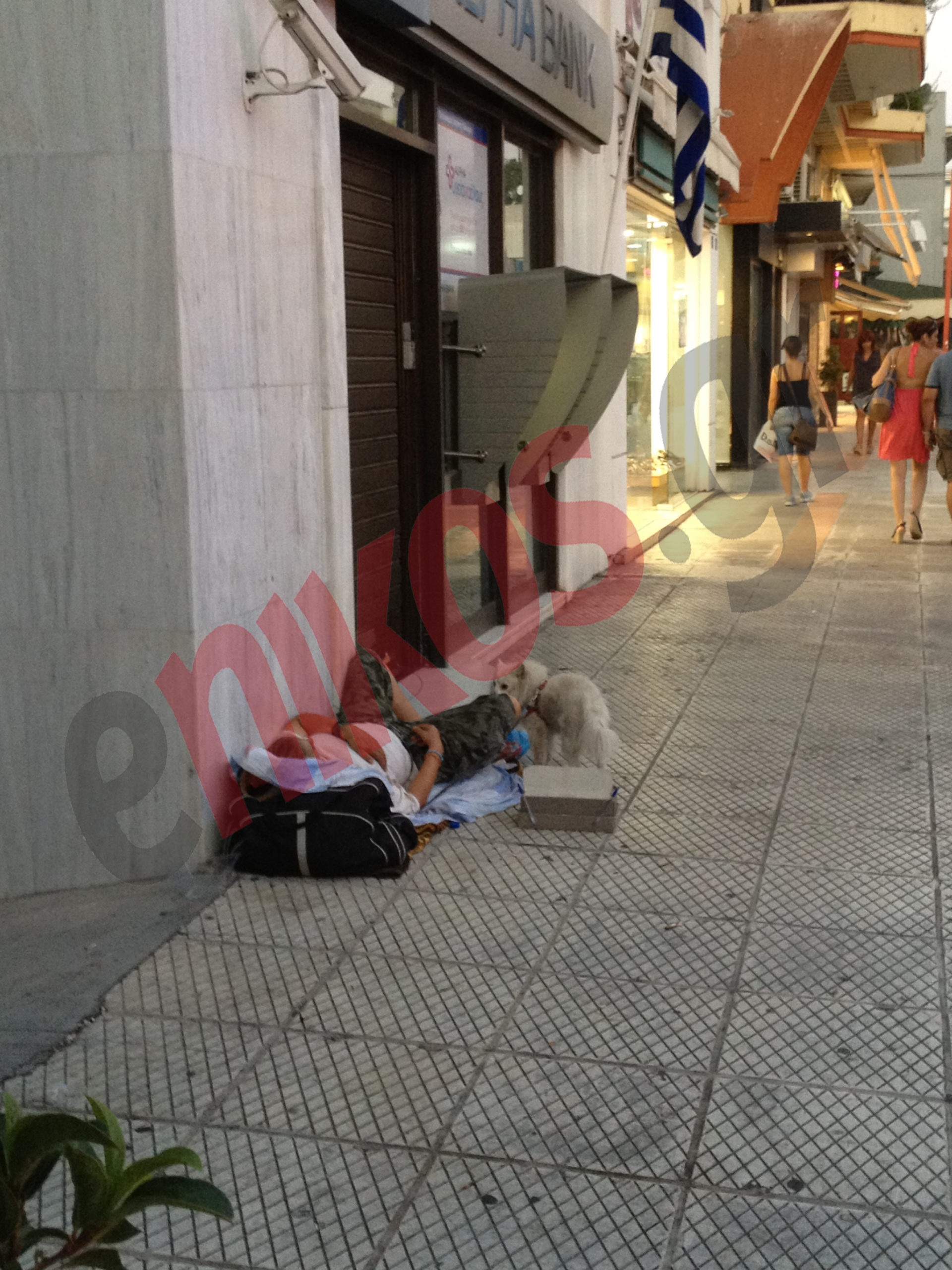 Τη συγκεκριμένη φωτογραφία μας έστειλε αναγνώστης του enikos.gr σημειώνοντας ότι:«Το χαρτί που βρίσκεται δίπλα σε αυτή τη γυναίκα και τον σκύλο της γράφει:”Δεν είμαι ζητιάνα, είμαι άστεγη,βοηθήστε με”»