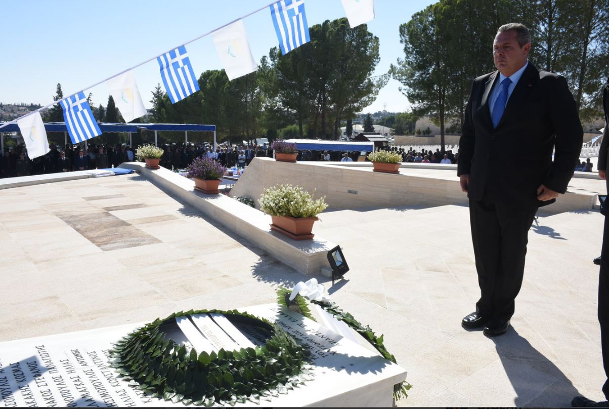 Το πρωί ο υπουργός Άμυνας Πάνος Καμμένος βρέθηκε στην Κύπρο για την τελετή παράδοσης των λειψάνων.