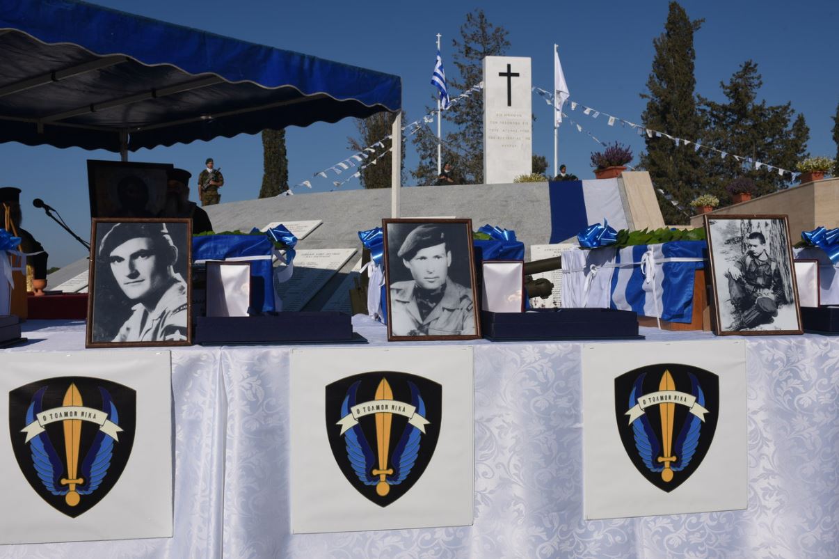 Παρών στην τελετή ήταν και ο υπουργός Εθνικής Άμυνας Πάνος Καμμένος, καθώς και η στρατιωτική ηγεσία του Υπουργείου. Κατά την επιστροφή του στον ελληνικό εναέριο χώρο το αεροσκάφος που μετέφερε τα λείψανα των Ελλήνων αγωνιστών της Κύπρου συνόδευσαν αεροσκάφη Μιράζ 2000 της Πολεμικής Αεροπορίας.