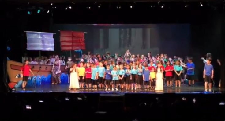 Μετά το τέλος της παράστασης «Οδύσσεια», οι μαθητές τραγούδησαν το τραγούδι της Σχολής σε μουσική της Ευγενίας Μανωλίδου. Όπως φαίνεται στο βίντεο ανάμεσα στους μικρούς τραγουδιστές είναι και ο Αλκαίος Γεωργιάδης.