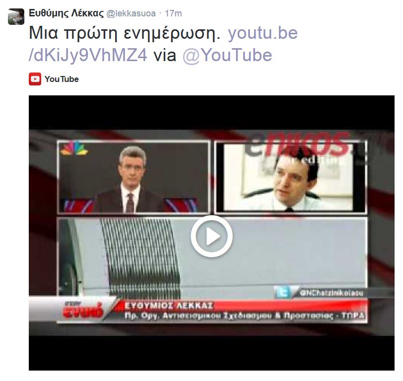 Δείτε εδώ το βίντεο με την παρέμβαση του κ. Λέκκα “στον ενικό”