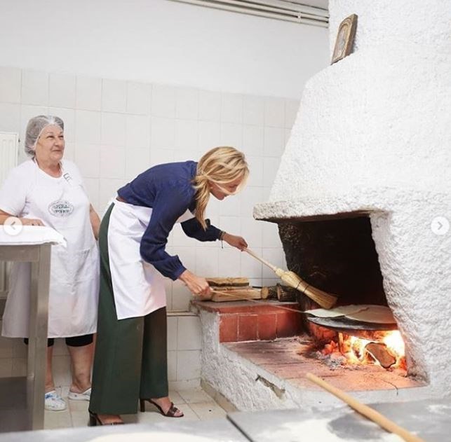 Όπως φαίνεται σε φωτογραφίες που ανέβασε στον προσωπικό της λογαριασμό στο Instagram, η κ. Μαρέβα Μητσοτάκη δεν δίστασε να φορέσει ποδιά και να ανοίξει φύλλο.