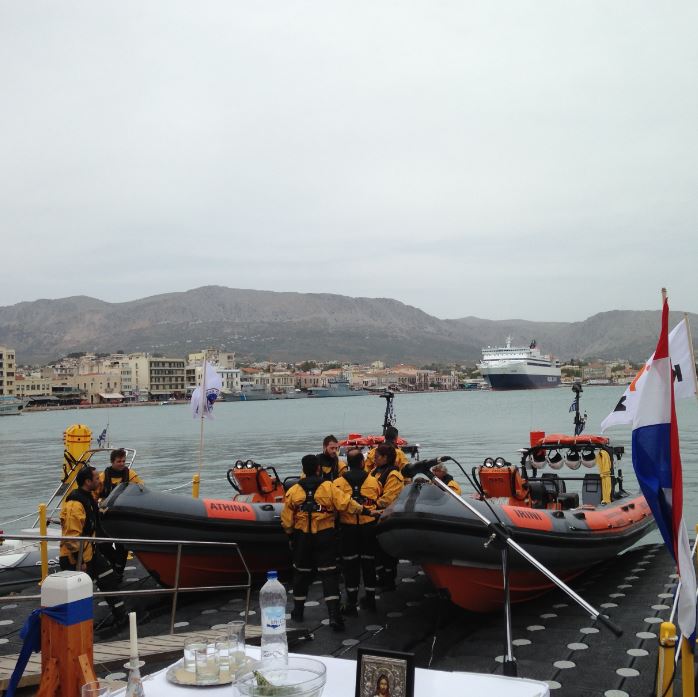 Επίσης, ο Αρχηγός ΓΕΕΘΑ παρέστη στην τελετή παράδοσης δύο ναυαγοσωστικών λέμβων, τις οποίες προσέφερε Ολλανδική Οργάνωση Θαλάσσιας Διάσωσης, στην Ελληνική Ομάδα Διάσωσης, για την κάλυψη αναγκών περισυλλογής μεταναστών και προσφύγων.