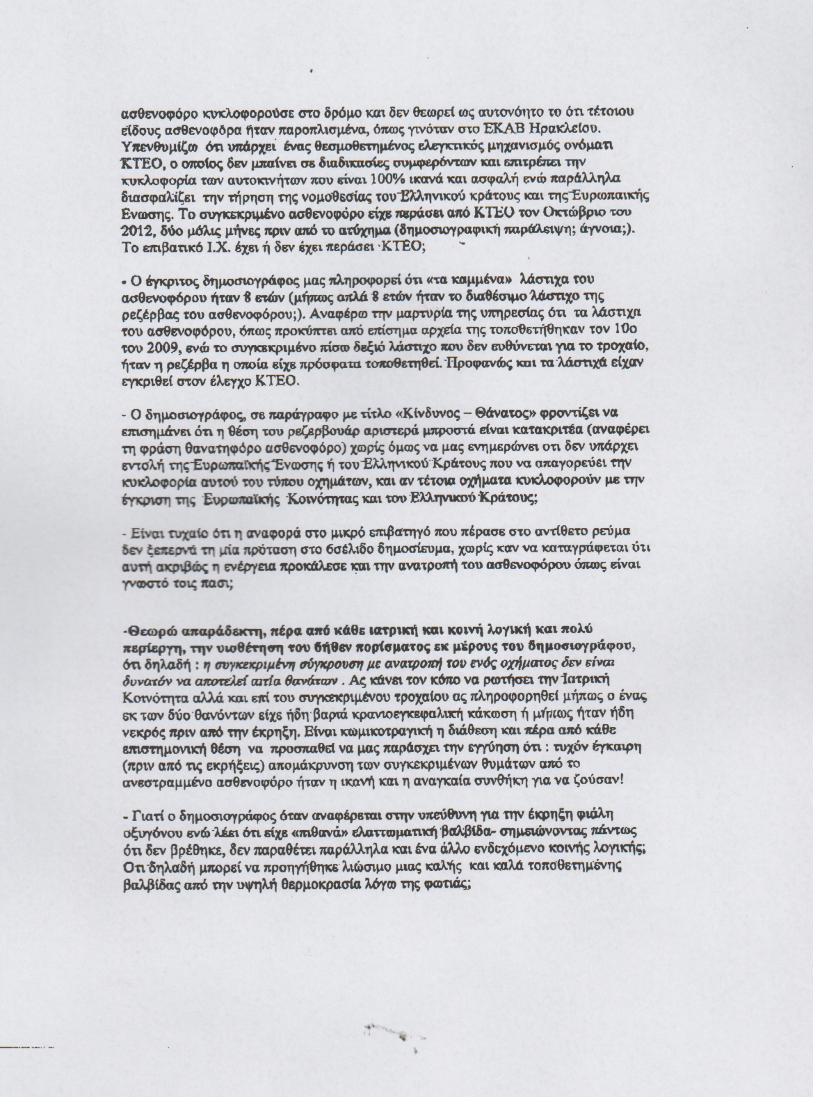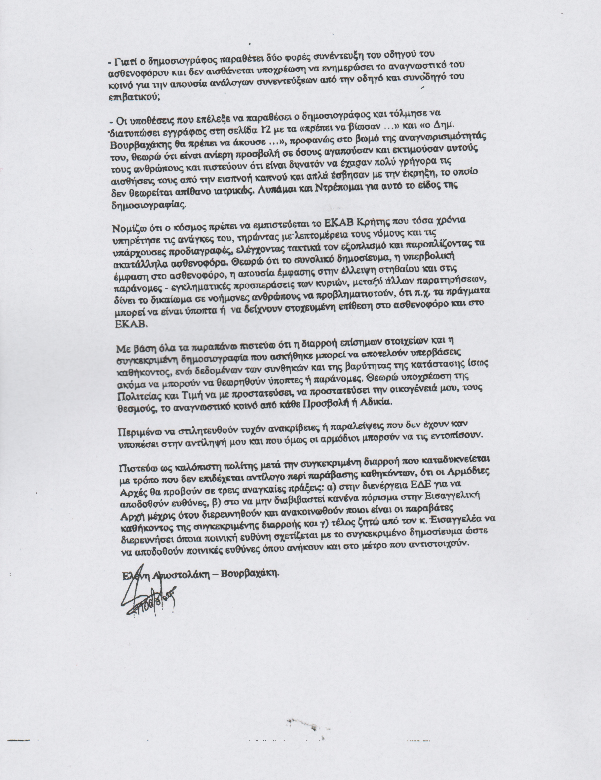 Η επιστολή της χήρας του αδικοχαμένου διευθυντή του ΕΚΑΒ