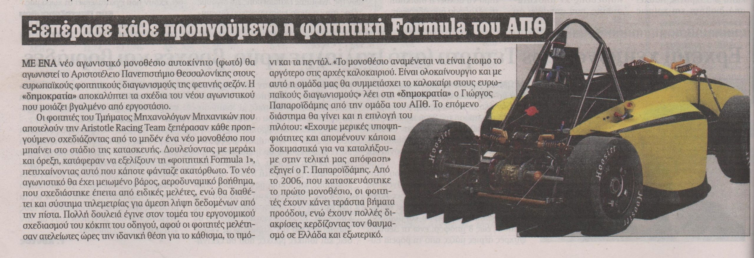Με νέο αγωνιστικό μονοθέσιο αυτοκίνητο θα αγωνιστεί το Αριστοτέλειο Πανεπιστήμιο Θεσσαλονίκης στους ευρωπαϊκούς φοιτητικούς διαγωνισμούς της φετινής σεζόν.