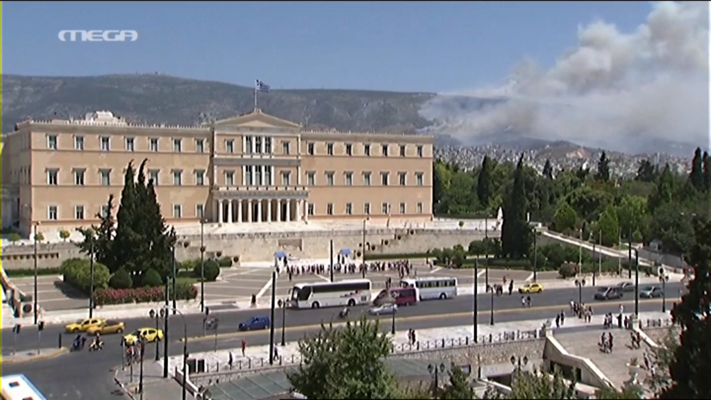 Η έκταση του καπνού είναι τόσο μεγάλη που φαίνεται από το Σύνταγμα.