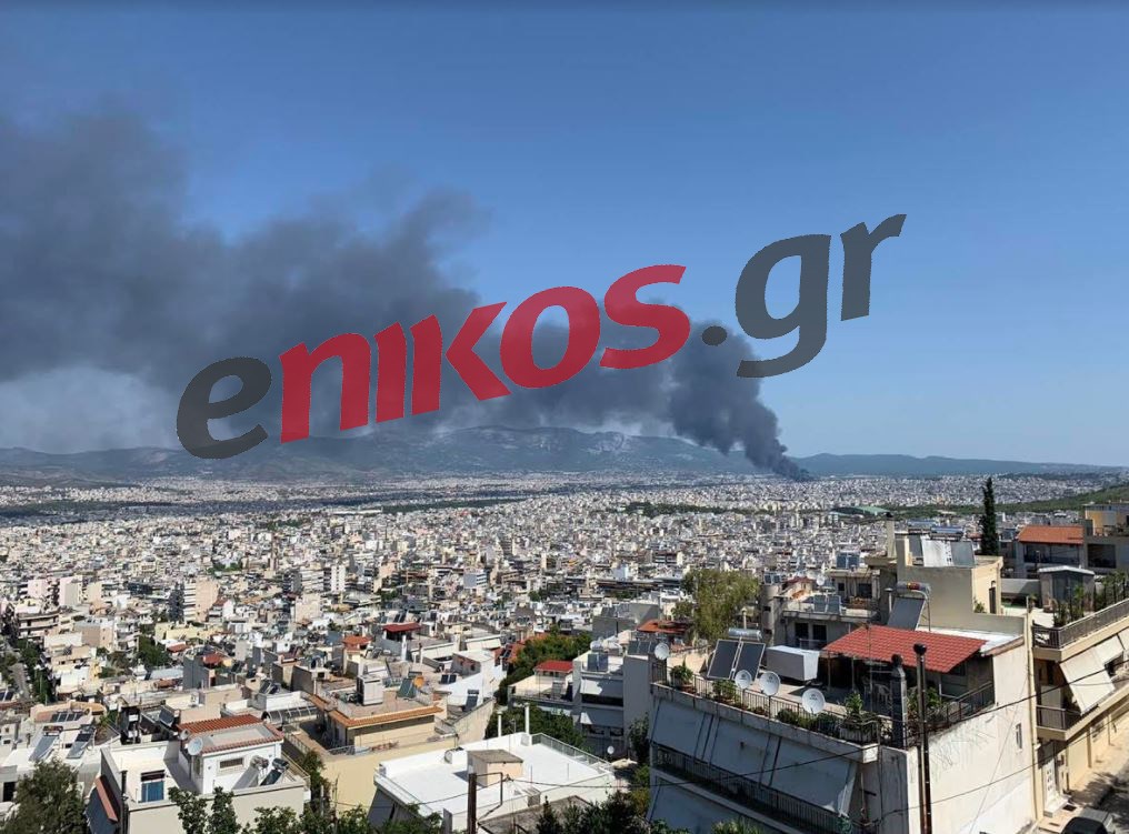 Δείτε στις φωτογραφίες που έστειλε αναγνώστης του enikos.gr πώς φαίνονται οι πυκνοί μαύροι καπνοί από το Αττικό Άλσος.