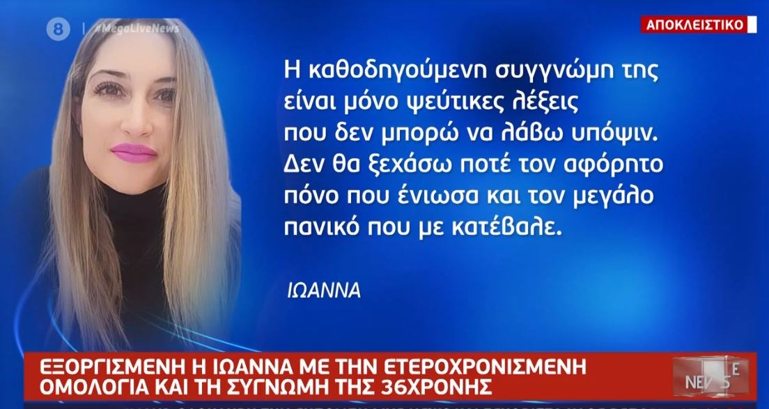 Καμία διάθεση να δεχθεί τη συγγνώμη της 36χρονης δεν έχει η Ιωάννα, όπως δήλωσε το απόγευμα της Τρίτης στο Mega. Η 35χρονη βιώνει έναν ατελείωτο Γολγοθά, σηκώνει έναν αβάσταχτο Σταυρό και η είδηση ότι σχεδόν 10 μήνες μετά την επίθεση η κατηγορούμενη αποφάσισε να μιλήσει, την σόκαρε.