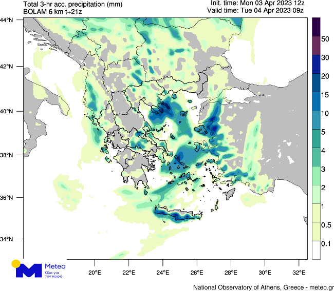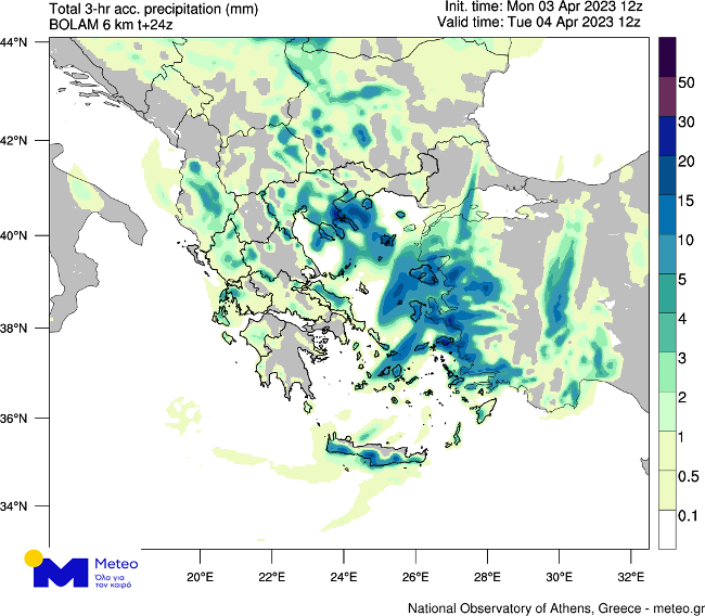 Σύμφωνα με τα προγνωστικά στοιχεία του Εθνικού Αστεροσκοπείου Αθηνών/ meteo.gr, η κακοκαιρία “ILINA” θα συνεχίσει να επηρεάζει σχεδόν το σύνολο της χώρας κατά τη διάρκεια της Τρίτης 04/04.
