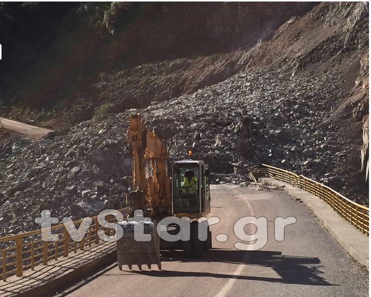 Η νέα κατολίσθηση έκανε πιο δύσκολη την προσπάθεια των υπηρεσιών να καθαρίσουν το δρόμο και να τον δώσουν ξανά στην κυκλοφορία.