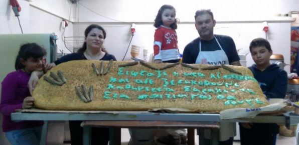 Μια λαγάνα- γίγας μήκους 1,60 μέτρων και 50 εκατοστών πλάτους έφτιαξε ένας φούρνος στην Ιεράπετρα Λασιθίου για το καλωσόρισμα των πελατών του.