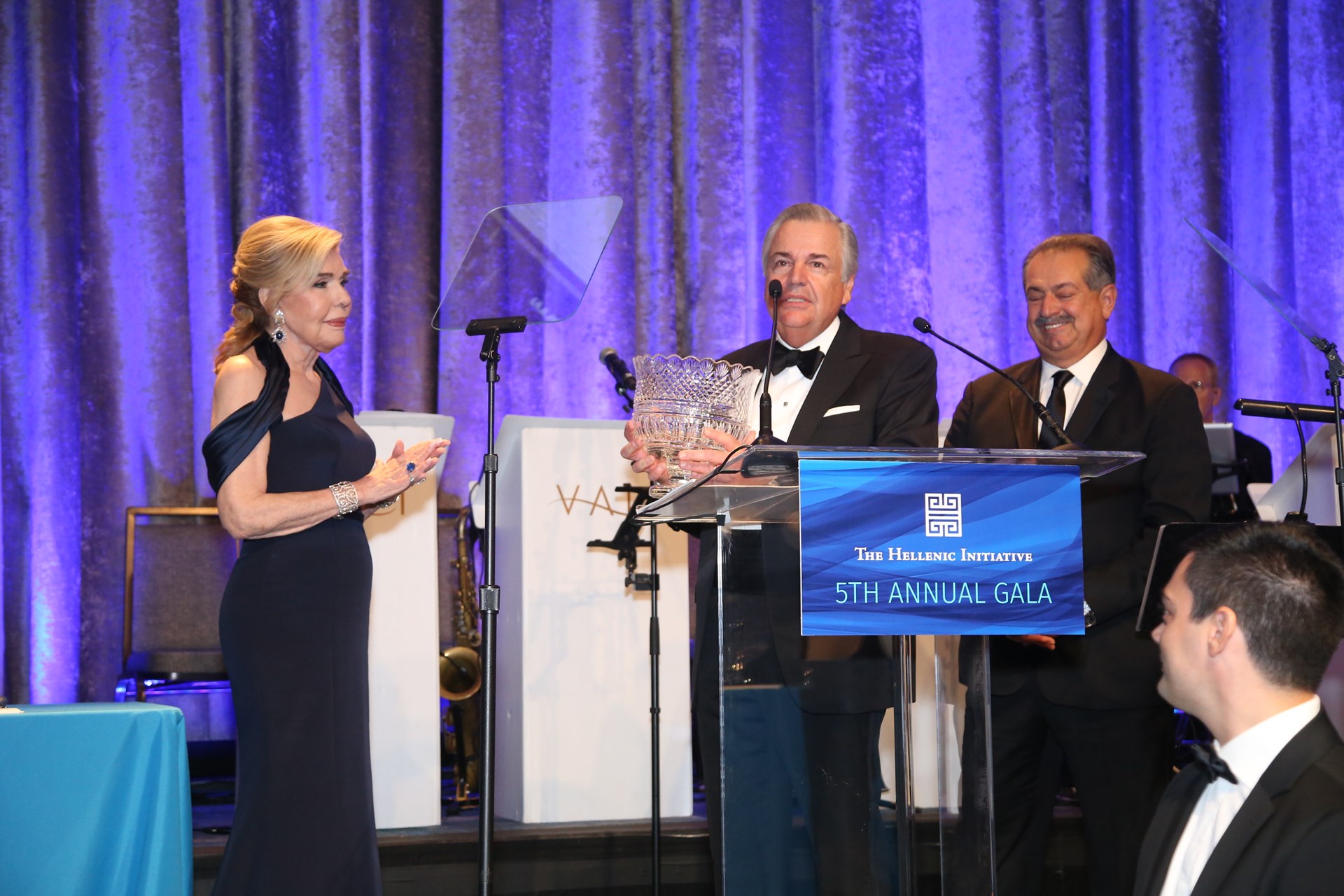 Στιγμιότυπο από τη βράβευση της Μαριάννας Β. Βαρδινογιάννη με το Hellenic Leadership Award, στο 5ο Eτήσιο Gala του THI, Νέα Υόρκη, Σεπτέμβριος 2017