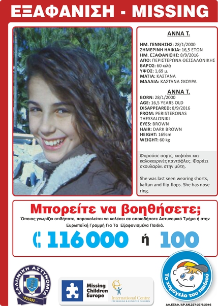 Το κινητό της 16χρονης είναι κλειστό ενώ έχει διαγραφεί και ο λογαριασμός που διατηρούσε στο facebook γεγονός που προβληματίζει ιδιαίτερα τις αρχές. Η Άννα έμενε το τελευταίο χρονικό διάστημα μαζί με τον πατέρα της στον Περιστερώνα Θεσσαλονίκης ενώ η μητέρα της μένει μόνιμα στην Αθήνα.