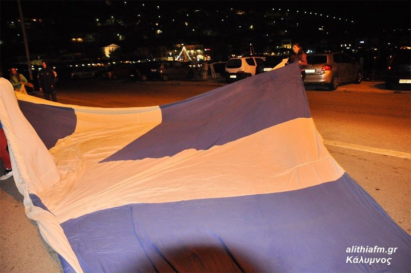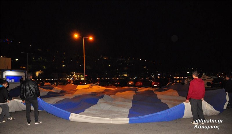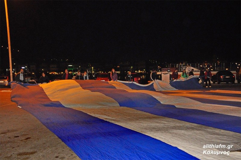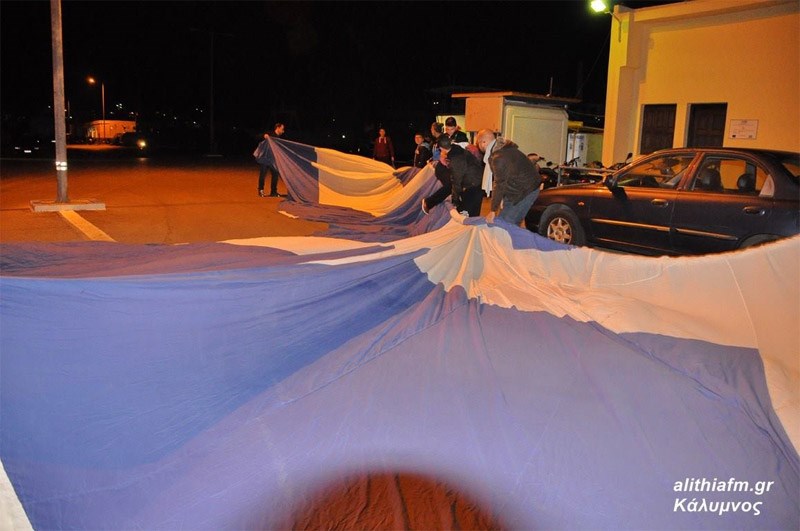 Παρουσία του Προέδρου της Δημοκρατίας, Προκόπη Παυλόπουλου, γιορτάστηκε χθες, Τρίτη, στην Κάλυμνο η 70ή επέτειος της Ενσωμάτωσης της Δωδεκανήσου και η τεράστια ελληνική σημαία των 500 τ.μ. υψώθηκε στο νησί.Η γαλανόλευκη, παραχωρήθηκε στο ακριτικό νησί, από τη Ζάκυνθο αν και αρχική σκέψη ήταν να δοθεί στην Εθνική Ελλάδας ποδοσφαίρου, αλλά τελικά προτιμήθηκε να δοθεί στην Κάλυμνο για ιστορικούς λόγους.Η εν λόγω ελληνική σημαία έχει μπει και στο βιβλίο Γκίνες ως η μεγαλύτερη σε επιφάνεια σημαία κράτους, και η κατασκευή της σημαίας ήταν ιδέα του μηχανικού Σταμάτη Λιβέρη και το εγχείρημα είχε χρηματοδοτηθεί εν μέρει από την Περιφέρεια Ιονίων Νήσων που προκήρυξε διαγωνισμό για την δημιουργία καινοτόμων ιδεών.Ο ιστός τότε στοίχισε 65.000 και το ύφασμα 5.000. Το συνολικό κόστος της κατασκευής ανήλθε στις 100.000 εκ των οποίων τις 30.000 τις προσέφερε η Περιφέρεια. Τα υπόλοιπα έξοδα καλύφθηκαν από τον εμπνευστή της ιδέας.