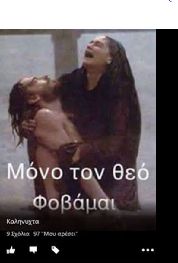 Συγκεκριμένα, η Αθηνά Παντελίδου ανέβασε μια φωτογραφία στην οποία φαίνεται η Παναγία να κρατά στην αγκαλιά της τον νεκρό γιο της.