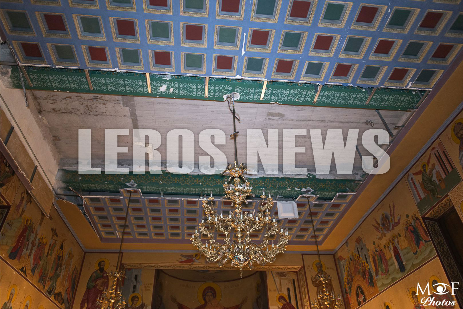 Τμήμα οροφής εκκλησίας κατέρρευσε στη Λέρο, λίγο πριν ξεκινήσει η γαμήλια τελετή και ενώ στον προαύλιο χώρο βρισκόταν ο γαμπρός και δεκάδες προσκεκλημένοι αναμένοντας την νύφη. Το περιστατικό συνέβη το Σαββάτο, στην εκκλησία του Αγίου Νικολάου, στο Λακκί της Λέρου, όπου κατέρρευσε τμήμα της οροφής προκαλώντας μεγάλη αναστάτωση αφού σε λίγο επρόκειτο να ξεκινήσει η γαμήλια τελετή. Από την κατάρρευση τραυματίστηκε ελαφρά μία γυναίκα που μεταφέρθηκε για παροχή πρώτων βοηθειών στο νοσοκομείο του νησιού.