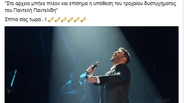Μετά το πόρισμα του Εισαγγελέα για την υπόθεση Παντελίδη, αποδεικνύεται ότι οδηγός του μοιραίου τζιπ ήταν ο άτυχος τραγουδιστής.