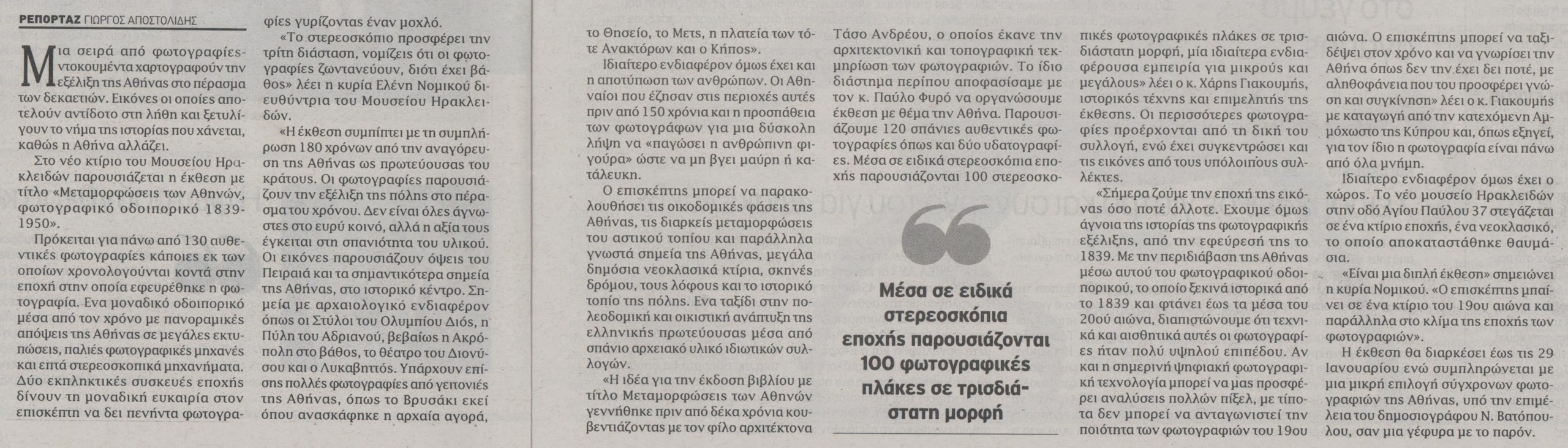 Στο νέο κτίριο του Μουσείου Ηρακλειδών παρουσιάζεται η έκθεση με τίτλο «Μεταμορφώσεις των Αθηνών, φωτογραφικό οδοιπορικό 1839-1950».