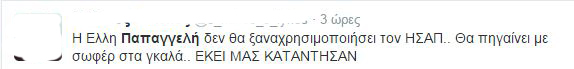 Την αντίδραση πολλών χρηστών του twitter προκάλεσε η ανάρτηση της Έλλης Παπαγγελή για το επεισόδιο που σημειώθηκε στον ηλεκτρικό σταθμό της Κηφισιάς όπου ένας υπάλληλος σεκιούριτι του ΗΣΑΠ, ζήτησε από έναν Αφρικανό επιβάτη να πάει σε ένα από τα πίσω βαγόνια επειδή εμπόδιζε η μεσαίου μεγέθους βαλίτσα του.