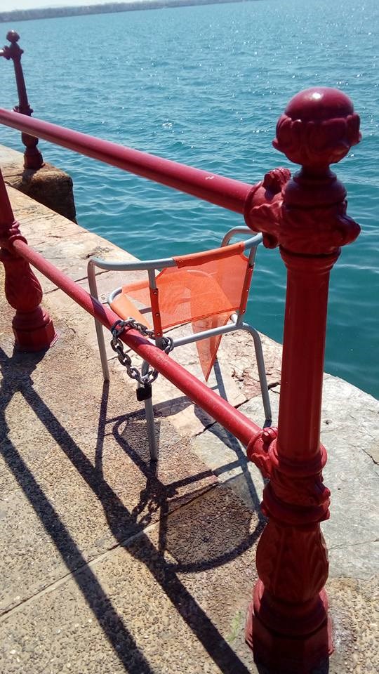 Ένας κάτοικος της Θεσσαλονίκης ήθελε, όπως φαίνεται, να εξασφαλίσει μια μόνιμη θέση δίπλα στη θάλασσα, στην παλιά παραλία της πόλης.Πήρε λοιπόν την καρέκλα του και την έδεσε με αλυσίδα στα προστατευτικά κάγκελα που υπάρχουν στον χώρο, βάζοντας μάλιστα και λουκέτο ώστε να είναι σίγουρος ότι δεν θα του την κλέψουν.Η φωτογραφία δημοσιεύτηκε στη σελίδα «active thessaloniki» στο Facebook και κάνει τον γύρο του διαδικτύου.