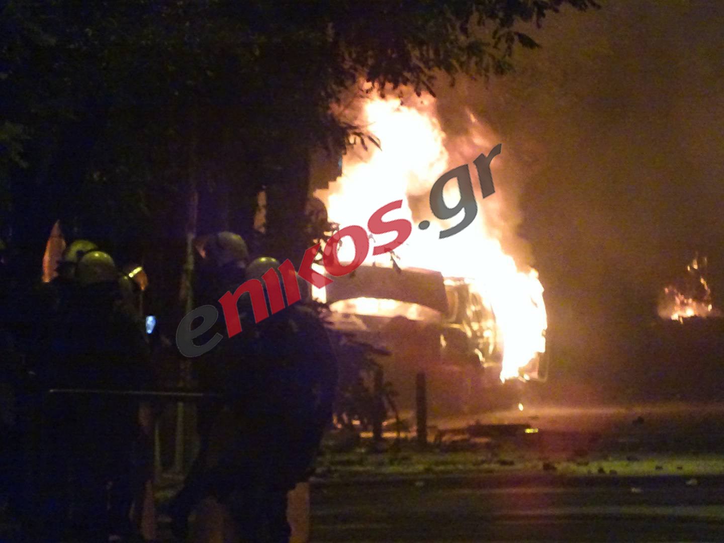 Στις φλόγες έχει παραδοθεί εδώ και λίγη ώρα ένα αυτοκίνητο στην οδό Στουρνάρη στα Εξάρχεια, όπου ο «κλεφτοπόλεμος» μεταξύ αστυνομίας και αντιεξουσιαστών συνεχίζεται.