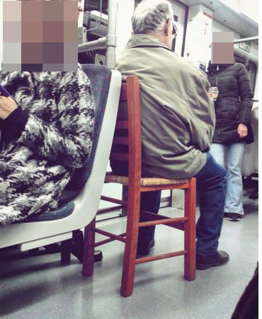 Αποφασισμένος να μην ταλαιπωρηθεί στη διαδρομή του με το μετρό φαίνεται πως ήταν ένας ηλικιωμένος άνδρας ο οποίος κουβάλησε μαζί του στο βαγόνι μια ψάθινη καρέκλα. Μόλις επιβιβάστηκε, τοποθέτησε την καρέκλα σε ένα σημείο και …απόλαυσε τη διαδρομή.